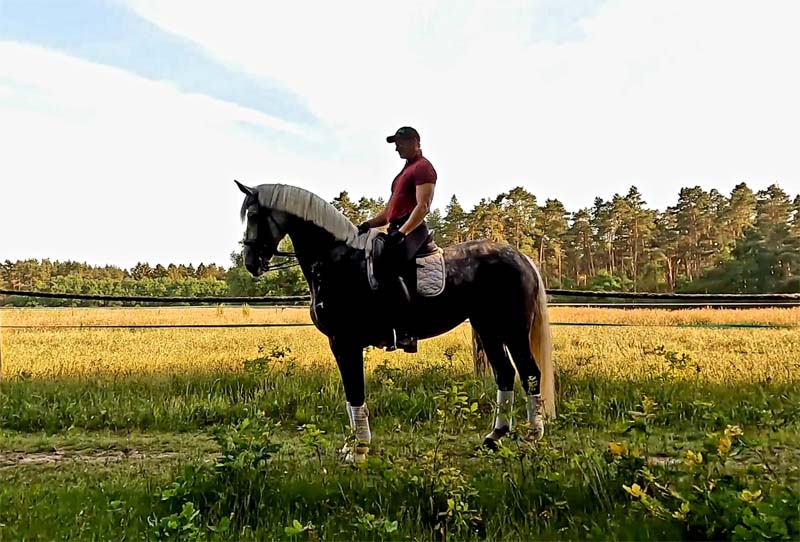 ist   ausgebildeter   FN   Bereit er   und   nahm   jahrelang   sehr   erfolgreich   an   vielen   Spring-   und   Dressurturnieren   teil. Während   eines   Aufenthaltes   in   Spanien   wurde   Oliver   am   Strand   auf   einen   Spanier   aufmerksam   der   mit   seinem Pferd    am    Meer    entlang    ritt.    Die    Leichtigkeit    faszinierte    Oliver    so,    dass    er    direkt    Kontakt    aufnahm    und anschließend   gleich   ein   Jahr   in   Spanien   blieb.   Die   Reitweise   die   er   dort   kennenlernte,   war   in   vielem   unterschiedlich   zu   dem,   was   er aus   Deutschland   kannte.   Einige   Jahre   vergingen   bis   Oliver   das   neue   Wissen   mit   dem   bisherigen   kombinierte   und   so   seinen eigenen Weg fand. Damals   verkaufte   er   auch   vorübergehend   iberische   Pferde,   was   aber   nur   ein kurzes   Intermezzo   war,   da   sein   Herz   schon   damals   ganz   der   Reiterei   gehörte. Seinen   Schülern   versucht   er   eben   diese   Liebe   zu   vermitteln,   hat   aber   einen ebenso   hohen   Anspruch   an   sie,   wie   an   sich   selbst:   “Man   kann   das   Reiten   nicht neu   erfinden.   Man   muss   sich   immer   wieder   in   Frage   stellen   und   ehrlich   zu   sich selbst   sein.   Manchmal   muss   man   auch   ganz   von   vorn   beginnen,   um   sein   Ziel   zu erreichen.“ Mit    seinem    ersten    Iberer    Gitano    verbindet    Oliver    eine    ganz    besondere Geschichte.   Nachdem   er   ihn   todkrank   kaufte   und   so   vor   dem   Schlachter   rettete, nahm   er   ihn   mit   nach   Deutschland   und   pflegte   ihn   über   viele   Monate   gesund. Nach    einiger    Zeit    Training,    bereisten    die    beiden    viele    Shows    in    ganz Deutschland,   wo   dann   auch   Günther   Fröhlich   auf   sie   aufmerksam   wurde   und zum Pferdemusical „Zauberwald“ holte.  Dort   traf   Oliver   auf   Ana.   Heute   arbeiten   die   beiden   bereits   23   Jahre   miteinander   und   ergänzen   sich   wunderbar   durch   ihre Leidenschaft zum Flamenco und den Pferden.  L e h r g ä n g e:  Auf Anfrage gibt Oliver Jubin themenbezogene Wochenendkurse für 4-8 Reiter mit eigenem Pferd.